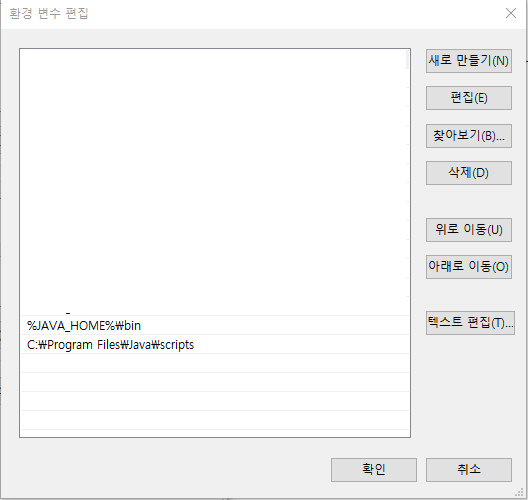 - %JAVA_HOME%\bin 밑에 아래와 같이 작성한다