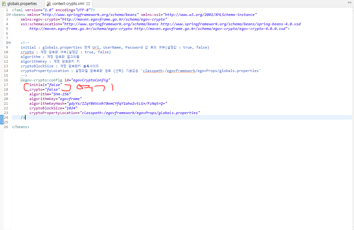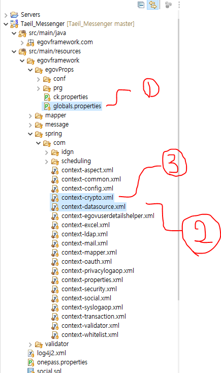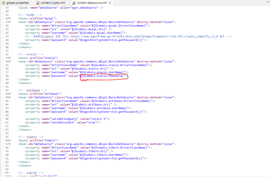 <property name="password" value="#{egovEnvCryptoService.getPassword()}"/> 부분을