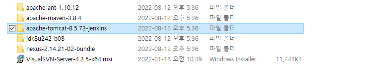 ex)C:\Users\DEV7\Desktop\개인\eGovFrameDev-4.0.0-64bit\eGovCI-4.0.0_64bit\bin\apache-tomcat-8.5.73-jenkins
