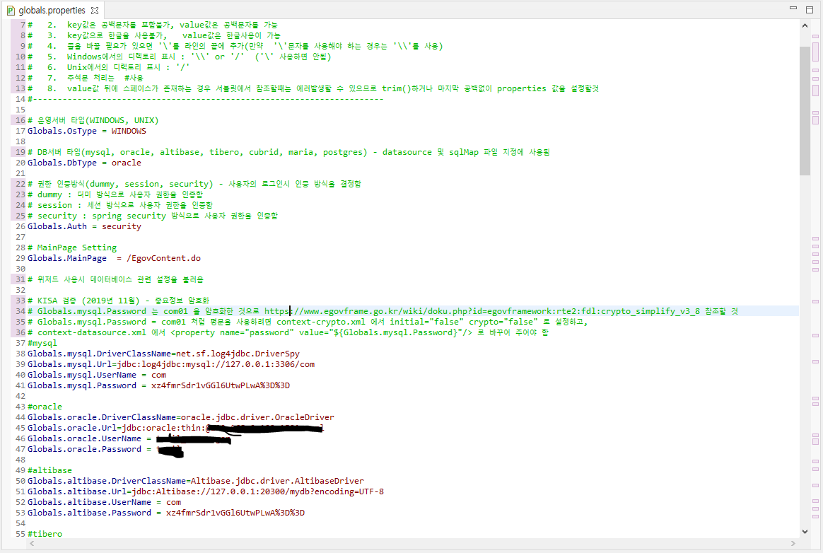 db연결정보 부분을 보면 Password가 암호화가 되어있는 상태이다
