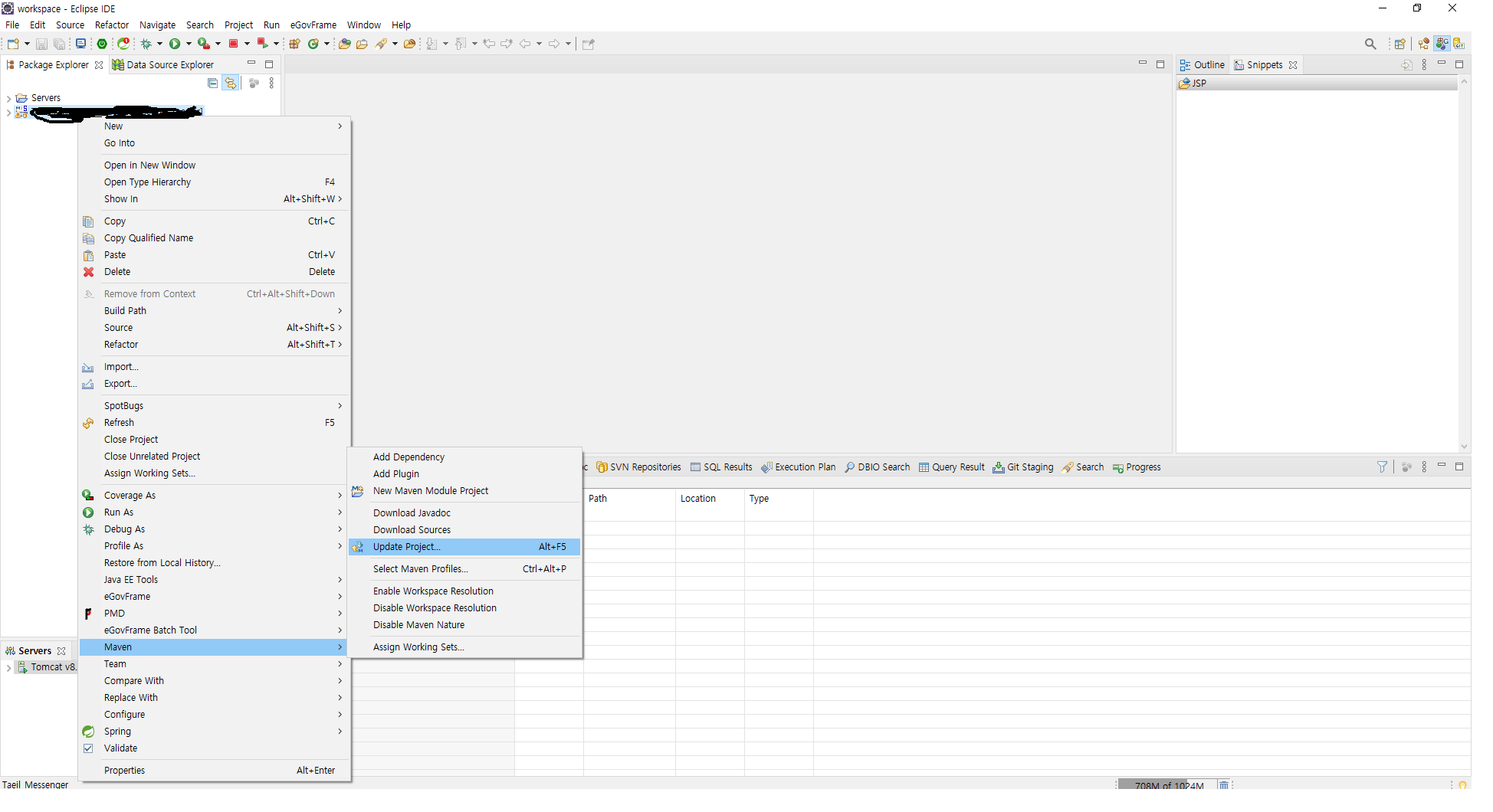 - 이제 프로젝트가 생성이 됐다 maven update부터 하자..